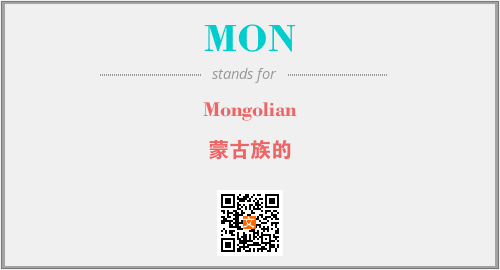 上述内容是“Mongolian”作为“MON”的缩写,解释为“蒙古族的”时的信息,以及英文缩略词MON所代表的英文单词,其对应的中文拼音、详细解释以及在英文中的流行度和相关分类、应用领域及应用示例等。