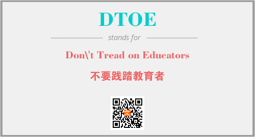 以上为Don\'t Tread on Educators英文缩略词DTOE的中文解释,以及该英文缩写在英语的流行度、分类和应用领域方面的信息。