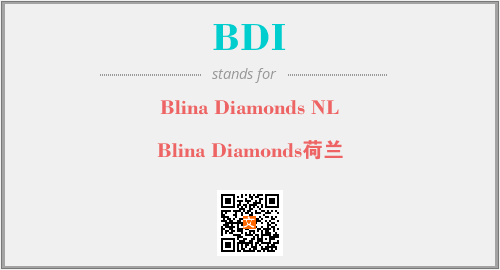 英文缩略词“BDI”经常作为“Blina Diamonds NL”的英文缩写来使用,中文表示:“Blina Diamonds荷兰”。本文将详细介绍英文缩写词BDI所代表英文单词,其对应的中文拼音、详细解释以及在英语中的流行度。此外,还有关于缩略词BDI的分类、应用领域及相关应用示例等。