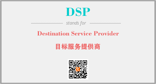 英文缩略词“DSP”经常作为“Destination Service Provider”的英文缩写来使用,中文表示:“目标服务提供商”。本文将详细介绍英文缩写词DSP所代表英文单词,其对应的中文拼音、详细解释以及在英语中的流行度。此外,还有关于缩略词DSP的分类、应用领域及相关应用示例等。
