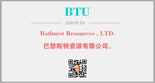 上述内容是“Bathurst Resources , LTD.”作为“BTU”的缩写,解释为“巴瑟斯特资源有限公司。”时的信息,以及英文缩略词BTU所代表的英文单词,其对应的中文拼音、详细解释以及在英文中的流行度和相关分类、应用领域及应用示例等。
