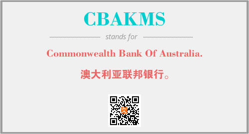 上述内容是“Commonwealth Bank Of Australia.”作为“CBAKMS”的缩写,解释为“澳大利亚联邦银行。”时的信息,以及英文缩略词CBAKMS所代表的英文单词,其对应的中文拼音、详细解释以及在英文中的流行度和相关分类、应用领域及应用示例等。