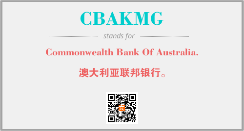 上述内容是“Commonwealth Bank Of Australia.”作为“CBAKMG”的缩写,解释为“澳大利亚联邦银行。”时的信息,以及英文缩略词CBAKMG所代表的英文单词,其对应的中文拼音、详细解释以及在英文中的流行度和相关分类、应用领域及应用示例等。