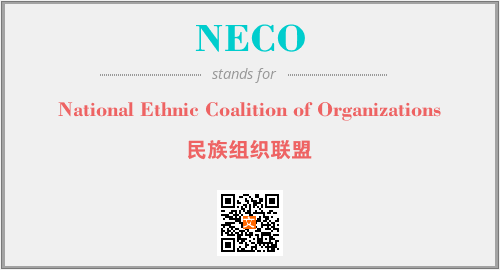 上述内容是“National Ethnic Coalition of Organizations”作为“NECO”的缩写,解释为“民族组织联盟”时的信息,以及英文缩略词NECO所代表的英文单词,其对应的中文拼音、详细解释以及在英文中的流行度和相关分类、应用领域及应用示例等。