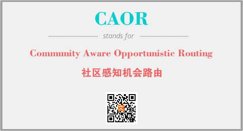 上述内容是“Community Aware Opportunistic Routing”作为“CAOR”的缩写,解释为“社区感知机会路由”时的信息,以及英文缩略词CAOR所代表的英文单词,其对应的中文拼音、详细解释以及在英文中的流行度和相关分类、应用领域及应用示例等。