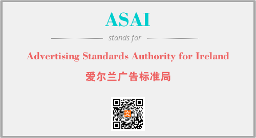 上述内容是“Advertising Standards Authority for Ireland”作为“ASAI”的缩写,解释为“爱尔兰广告标准局”时的信息,以及英文缩略词ASAI所代表的英文单词,其对应的中文拼音、详细解释以及在英文中的流行度和相关分类、应用领域及应用示例等。