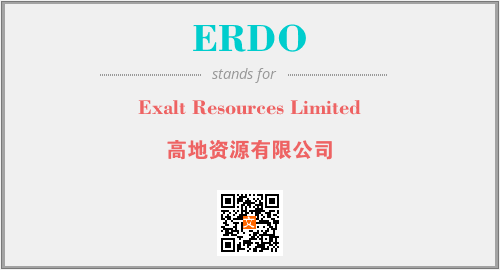 上述内容是“Exalt Resources Limited”作为“ERDO”的缩写,解释为“高地资源有限公司”时的信息,以及英文缩略词ERDO所代表的英文单词,其对应的中文拼音、详细解释以及在英文中的流行度和相关分类、应用领域及应用示例等。