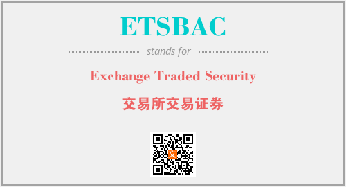 上述内容是“Exchange Traded Security”作为“ETSBAC”的缩写,解释为“交易所交易证券”时的信息,以及英文缩略词ETSBAC所代表的英文单词,其对应的中文拼音、详细解释以及在英文中的流行度和相关分类、应用领域及应用示例等。