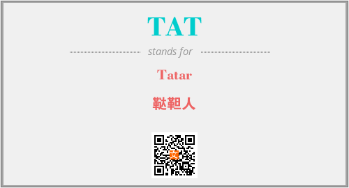 上述内容是“Tatar”作为“TAT”的缩写,解释为“鞑靼人”时的信息,以及英文缩略词TAT所代表的英文单词,其对应的中文拼音、详细解释以及在英文中的流行度和相关分类、应用领域及应用示例等。