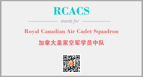 上述内容是“Royal Canadian Air Cadet Squadron”作为“RCACS”的缩写,解释为“加拿大皇家空军学员中队”时的信息,以及英文缩略词RCACS所代表的英文单词,其对应的中文拼音、详细解释以及在英文中的流行度和相关分类、应用领域及应用示例等。