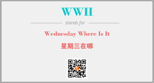 以上为Wednesday Where Is It英文缩略词WWII的中文解释,以及该英文缩写在英语的流行度、分类和应用领域方面的信息。