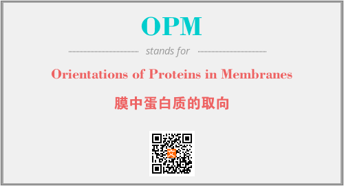 上述内容是“Orientations of Proteins in Membranes”作为“OPM”的缩写,解释为“膜中蛋白质的取向”时的信息,以及英文缩略词OPM所代表的英文单词,其对应的中文拼音、详细解释以及在英文中的流行度和相关分类、应用领域及应用示例等。