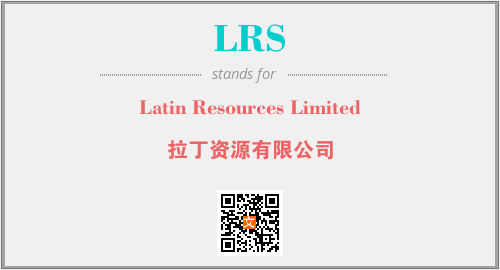以上为Latin Resources Limited英文缩略词LRS的中文解释,以及该英文缩写在英语的流行度、分类和应用领域方面的信息。