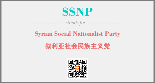 英文缩略词“SSNP”经常作为“Syrian Social Nationalist Party”的英文缩写来使用,中文表示:“叙利亚社会民族主义党”。本文将详细介绍英文缩写词SSNP所代表英文单词,其对应的中文拼音、详细解释以及在英语中的流行度。此外,还有关于缩略词SSNP的分类、应用领域及相关应用示例等。
