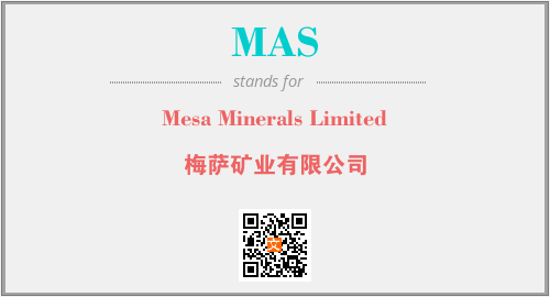 英文缩略词“MAS”经常作为“Mesa Minerals Limited”的英文缩写来使用,中文表示:“梅萨矿业有限公司”。本文将详细介绍英文缩写词MAS所代表英文单词,其对应的中文拼音、详细解释以及在英语中的流行度。此外,还有关于缩略词MAS的分类、应用领域及相关应用示例等。