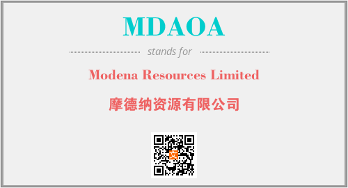 上述内容是“Modena Resources Limited”作为“MDAOA”的缩写,解释为“摩德纳资源有限公司”时的信息,以及英文缩略词MDAOA所代表的英文单词,其对应的中文拼音、详细解释以及在英文中的流行度和相关分类、应用领域及应用示例等。