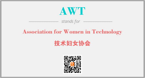 英文缩略词“AWT”经常作为“Association for Women in Technology”的英文缩写来使用,中文表示:“技术妇女协会”。本文将详细介绍英文缩写词AWT所代表英文单词,其对应的中文拼音、详细解释以及在英语中的流行度。此外,还有关于缩略词AWT的分类、应用领域及相关应用示例等。