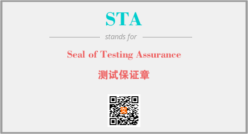 上述内容是“Seal of Testing Assurance”作为“STA”的缩写,解释为“测试保证章”时的信息,以及英文缩略词STA所代表的英文单词,其对应的中文拼音、详细解释以及在英文中的流行度和相关分类、应用领域及应用示例等。
