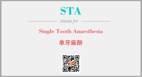 以上为Single Tooth Anaesthesia英文缩略词STA的中文解释,以及该英文缩写在英语的流行度、分类和应用领域方面的信息。