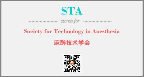 英文缩略词“STA”经常作为“Society for Technology in Anesthesia”的英文缩写来使用,中文表示:“麻醉技术学会”。本文将详细介绍英文缩写词STA所代表英文单词,其对应的中文拼音、详细解释以及在英语中的流行度。此外,还有关于缩略词STA的分类、应用领域及相关应用示例等。