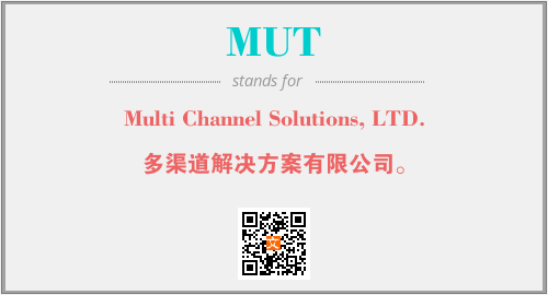上述内容是“Multi Channel Solutions, LTD.”作为“MUT”的缩写,解释为“多渠道解决方案有限公司。”时的信息,以及英文缩略词MUT所代表的英文单词,其对应的中文拼音、详细解释以及在英文中的流行度和相关分类、应用领域及应用示例等。