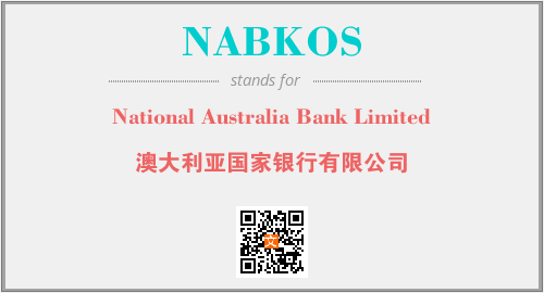 英文缩略词“NABKOS”经常作为“National Australia Bank Limited”的英文缩写来使用,中文表示:“澳大利亚国家银行有限公司”。本文将详细介绍英文缩写词NABKOS所代表英文单词,其对应的中文拼音、详细解释以及在英语中的流行度。此外,还有关于缩略词NABKOS的分类、应用领域及相关应用示例等。