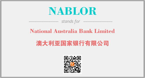 上述内容是“National Australia Bank Limited”作为“NABLOR”的缩写,解释为“澳大利亚国家银行有限公司”时的信息,以及英文缩略词NABLOR所代表的英文单词,其对应的中文拼音、详细解释以及在英文中的流行度和相关分类、应用领域及应用示例等。