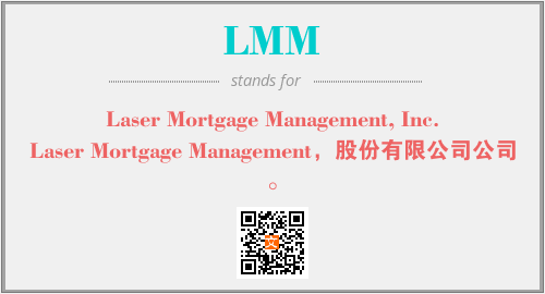 上述内容是“Laser Mortgage Management, Inc.”作为“LMM”的缩写,解释为“Laser Mortgage Management,股份有限公司公司。”时的信息,以及英文缩略词LMM所代表的英文单词,其对应的中文拼音、详细解释以及在英文中的流行度和相关分类、应用领域及应用示例等。