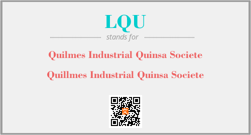 上述内容是“Quilmes Industrial Quinsa Societe”作为“LQU”的缩写,解释为“Quillmes Industrial Quinsa Societe”时的信息,以及英文缩略词LQU所代表的英文单词,其对应的中文拼音、详细解释以及在英文中的流行度和相关分类、应用领域及应用示例等。