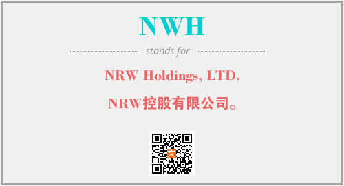 上述内容是“NRW Holdings, LTD.”作为“NWH”的缩写,解释为“NRW控股有限公司。”时的信息,以及英文缩略词NWH所代表的英文单词,其对应的中文拼音、详细解释以及在英文中的流行度和相关分类、应用领域及应用示例等。