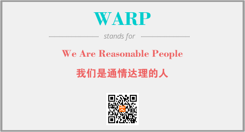 以上为We Are Reasonable People英文缩略词WARP的中文解释,以及该英文缩写在英语的流行度、分类和应用领域方面的信息。