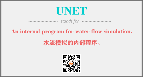 上述内容是“An internal program for water flow simulation.”作为“UNET”的缩写,解释为“水流模拟的内部程序。”时的信息,以及英文缩略词UNET所代表的英文单词,其对应的中文拼音、详细解释以及在英文中的流行度和相关分类、应用领域及应用示例等。