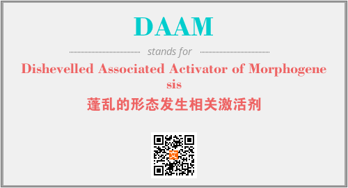 上述内容是“Dishevelled Associated Activator of Morphogenesis”作为“DAAM”的缩写,解释为“蓬乱的形态发生相关激活剂”时的信息,以及英文缩略词DAAM所代表的英文单词,其对应的中文拼音、详细解释以及在英文中的流行度和相关分类、应用领域及应用示例等。