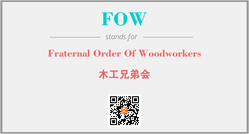 上述内容是“Fraternal Order Of Woodworkers”作为“FOW”的缩写,解释为“木工兄弟会”时的信息,以及英文缩略词FOW所代表的英文单词,其对应的中文拼音、详细解释以及在英文中的流行度和相关分类、应用领域及应用示例等。