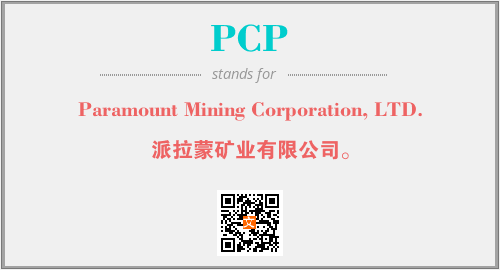 上述内容是“Paramount Mining Corporation, LTD.”作为“PCP”的缩写,解释为“派拉蒙矿业有限公司。”时的信息,以及英文缩略词PCP所代表的英文单词,其对应的中文拼音、详细解释以及在英文中的流行度和相关分类、应用领域及应用示例等。