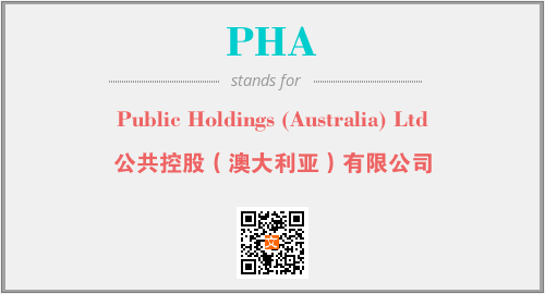 以上为Public Holdings (Australia) Ltd英文缩略词PHA的中文解释,以及该英文缩写在英语的流行度、分类和应用领域方面的信息。