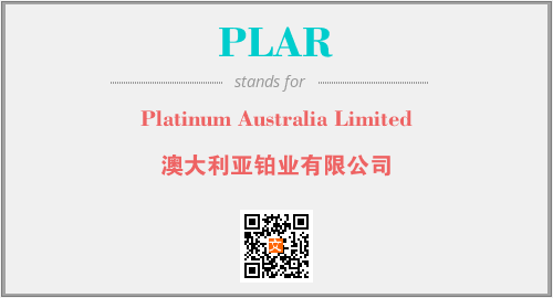 上述内容是“Platinum Australia Limited”作为“PLAR”的缩写,解释为“澳大利亚铂业有限公司”时的信息,以及英文缩略词PLAR所代表的英文单词,其对应的中文拼音、详细解释以及在英文中的流行度和相关分类、应用领域及应用示例等。