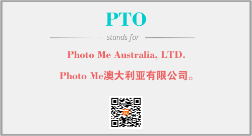 上述内容是“Photo Me Australia, LTD.”作为“PTO”的缩写,解释为“Photo Me澳大利亚有限公司。”时的信息,以及英文缩略词PTO所代表的英文单词,其对应的中文拼音、详细解释以及在英文中的流行度和相关分类、应用领域及应用示例等。