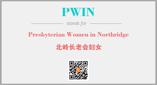 上述内容是“Presbyterian Women in Northridge”作为“PWIN”的缩写,解释为“北岭长老会妇女”时的信息,以及英文缩略词PWIN所代表的英文单词,其对应的中文拼音、详细解释以及在英文中的流行度和相关分类、应用领域及应用示例等。