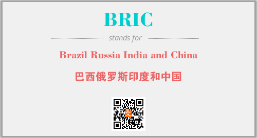 上述内容是“Brazil Russia India and China”作为“BRIC”的缩写,解释为“巴西俄罗斯印度和中国”时的信息,以及英文缩略词BRIC所代表的英文单词,其对应的中文拼音、详细解释以及在英文中的流行度和相关分类、应用领域及应用示例等。