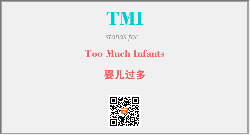 英文缩略词“TMI”经常作为“Too Much Infants”的英文缩写来使用,中文表示:“婴儿过多”。本文将详细介绍英文缩写词TMI所代表英文单词,其对应的中文拼音、详细解释以及在英语中的流行度。此外,还有关于缩略词TMI的分类、应用领域及相关应用示例等。
