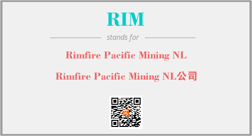 上述内容是“Rimfire Pacific Mining NL”作为“RIM”的缩写,解释为“Rimfire Pacific Mining NL公司”时的信息,以及英文缩略词RIM所代表的英文单词,其对应的中文拼音、详细解释以及在英文中的流行度和相关分类、应用领域及应用示例等。