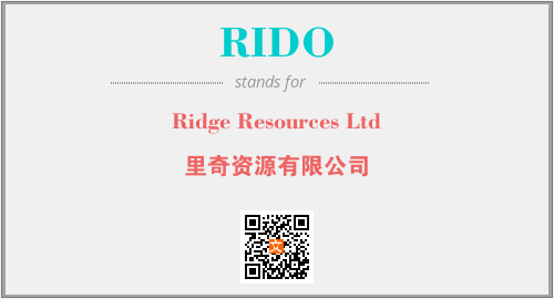 上述内容是“Ridge Resources Ltd”作为“RIDO”的缩写,解释为“里奇资源有限公司”时的信息,以及英文缩略词RIDO所代表的英文单词,其对应的中文拼音、详细解释以及在英文中的流行度和相关分类、应用领域及应用示例等。
