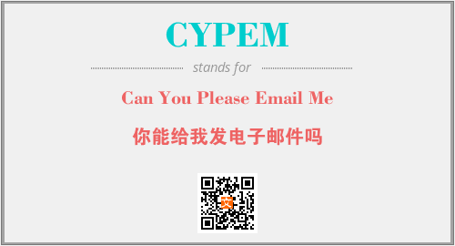 上述内容是“Can You Please Email Me”作为“CYPEM”的缩写,解释为“你能给我发电子邮件吗”时的信息,以及英文缩略词CYPEM所代表的英文单词,其对应的中文拼音、详细解释以及在英文中的流行度和相关分类、应用领域及应用示例等。