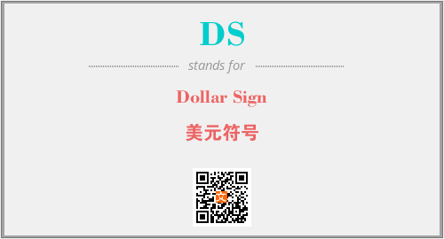 上述内容是“Dollar Sign”作为“DS”的缩写,解释为“美元符号”时的信息,以及英文缩略词DS所代表的英文单词,其对应的中文拼音、详细解释以及在英文中的流行度和相关分类、应用领域及应用示例等。