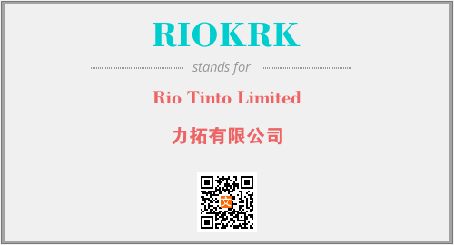 上述内容是“Rio Tinto Limited”作为“RIOKRK”的缩写,解释为“力拓有限公司”时的信息,以及英文缩略词RIOKRK所代表的英文单词,其对应的中文拼音、详细解释以及在英文中的流行度和相关分类、应用领域及应用示例等。