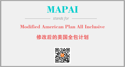 上述内容是“Modified American Plan All Inclusive”作为“MAPAI”的缩写,解释为“修改后的美国全包计划”时的信息,以及英文缩略词MAPAI所代表的英文单词,其对应的中文拼音、详细解释以及在英文中的流行度和相关分类、应用领域及应用示例等。