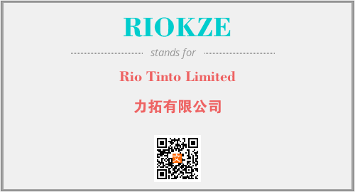 上述内容是“Rio Tinto Limited”作为“RIOKZE”的缩写,解释为“力拓有限公司”时的信息,以及英文缩略词RIOKZE所代表的英文单词,其对应的中文拼音、详细解释以及在英文中的流行度和相关分类、应用领域及应用示例等。