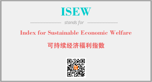 英文缩略词“ISEW”经常作为“Index for Sustainable Economic Welfare”的英文缩写来使用,中文表示:“可持续经济福利指数”。本文将详细介绍英文缩写词ISEW所代表英文单词,其对应的中文拼音、详细解释以及在英语中的流行度。此外,还有关于缩略词ISEW的分类、应用领域及相关应用示例等。