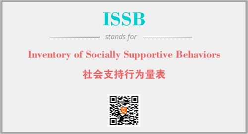 英文缩略词“ISSB”经常作为“Inventory of Socially Supportive Behaviors”的英文缩写来使用,中文表示:“社会支持行为量表”。本文将详细介绍英文缩写词ISSB所代表英文单词,其对应的中文拼音、详细解释以及在英语中的流行度。此外,还有关于缩略词ISSB的分类、应用领域及相关应用示例等。